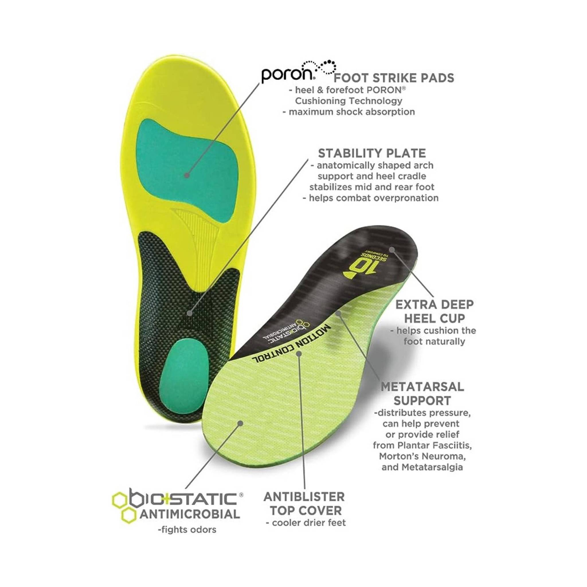 Take control of your stride with the 10 Second 3210 Motion Control Performance Insole. Engineered for all-day comfort and peak performance, it’s ideal for standing, walking, running, or any sport-related activity. Designed to cushion, stabilize, and keep feet fresh, this insole empowers you to move with confidence from morning to night.