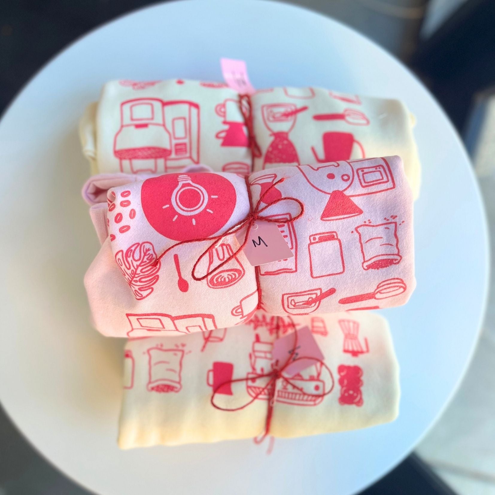 Pink Brio-themed pop art icons designed by the talented, local Burlington, VT artist Julianna Brazill, on your new favorite crewneck. Stand out with the design and stay cozy with the super soft fleece on the inside.