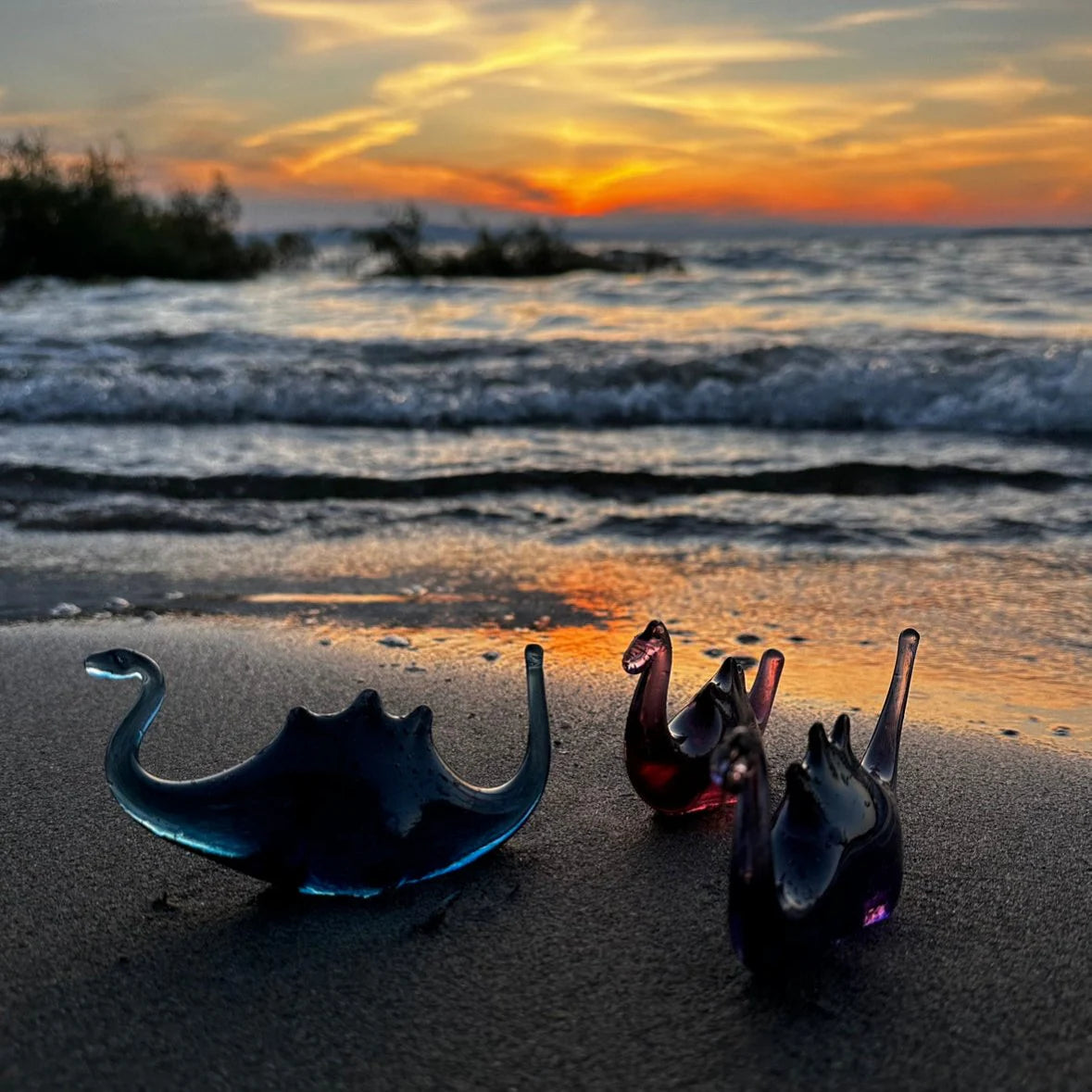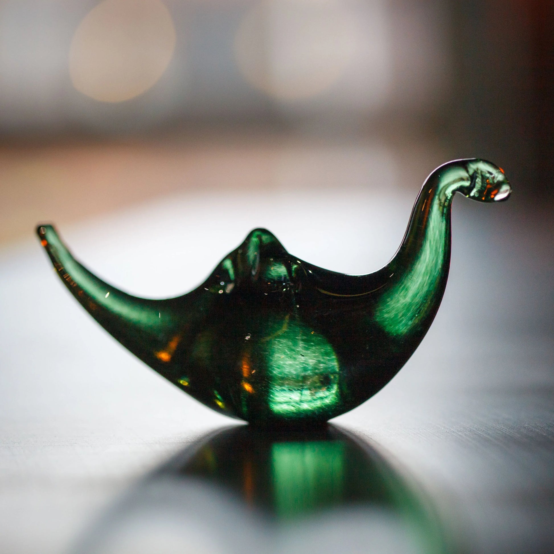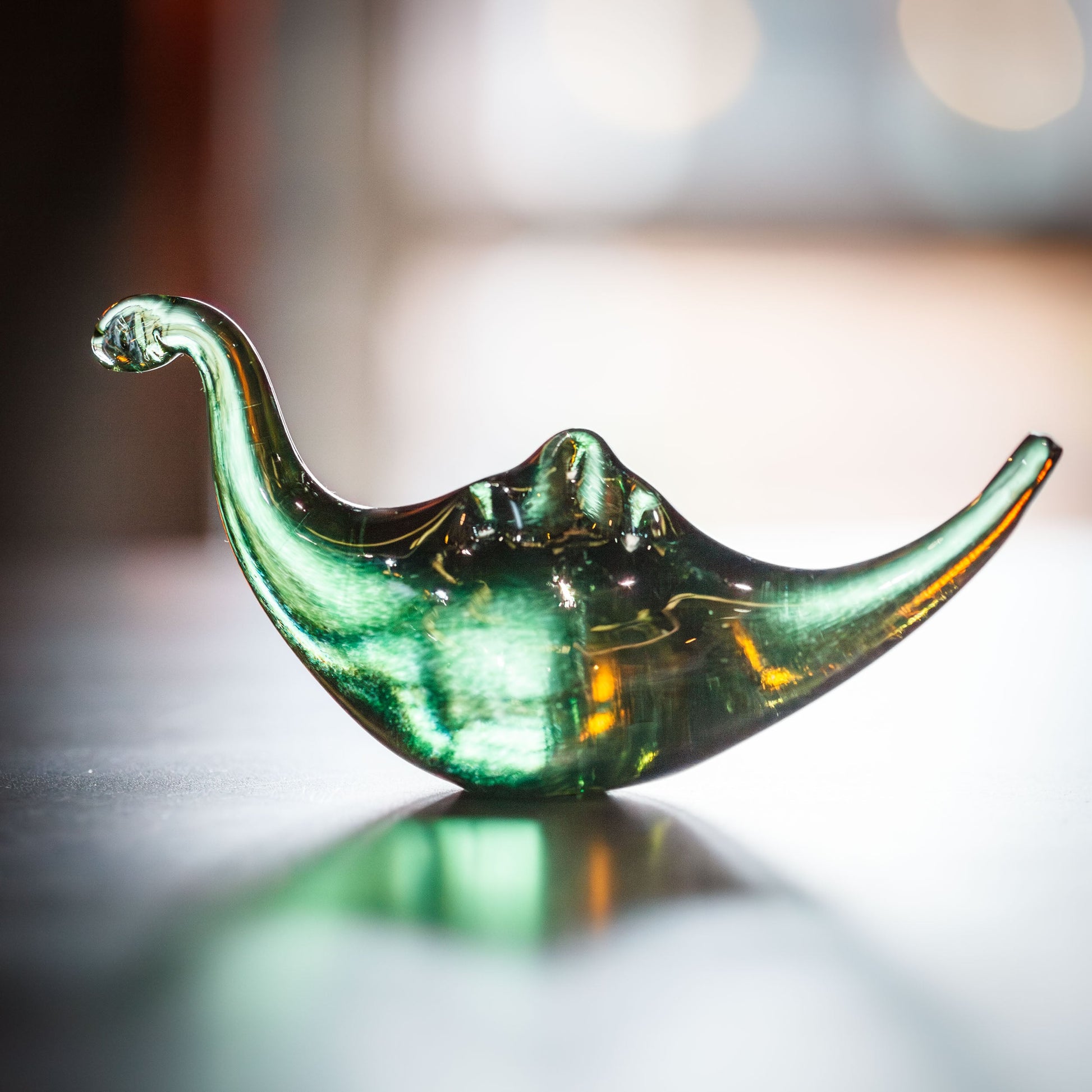 Champ the Lake Monster is a whimsical tribute to Lake Champlain’s legendary Gitaskog—often whispered as America’s Loch Ness Monster. This green glass sculpture brings the lore to life, adding a touch of mystery and charm to any shelf, desk, or display space.