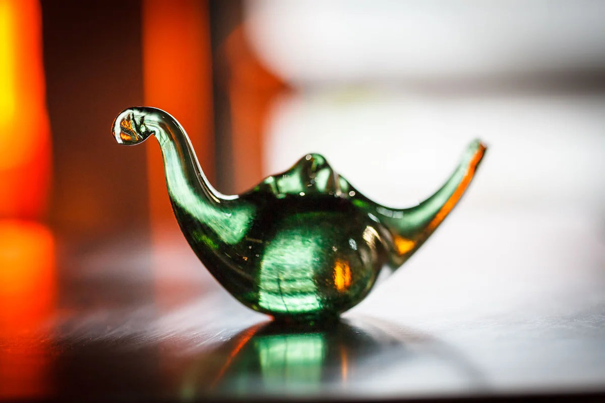 Champ the Lake Monster is a whimsical tribute to Lake Champlain’s legendary Gitaskog—often whispered as America’s Loch Ness Monster. This green glass sculpture brings the lore to life, adding a touch of mystery and charm to any shelf, desk, or display space.
