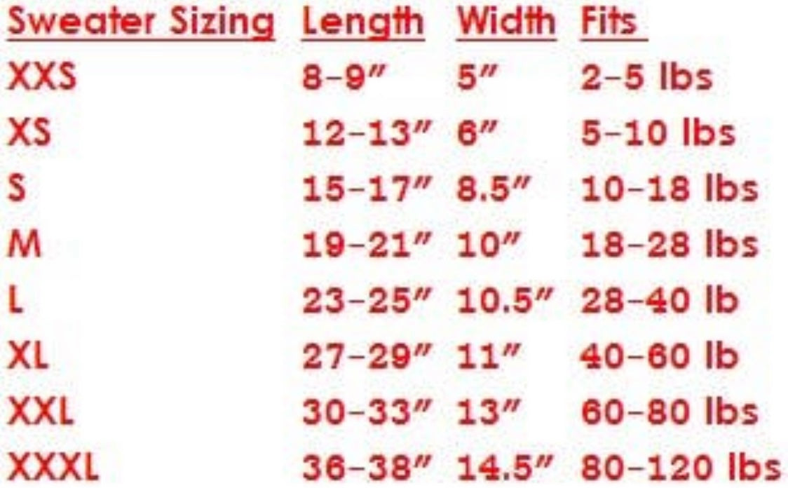 Sizes fit anyone from a teacup dog — or even a cat! — to a Great Dane. Which to get? They've got some stretch to them, so you can trust the size chart. (Our lanky 35 pound Saluki wears the same size as a 35 pound bulldog, for example!)