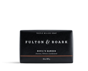 The Devil's Garden 8.8 oz bar soap by Fulton & Roark features a woody spicy blend of Incense, Vetiver, and Cardamom.