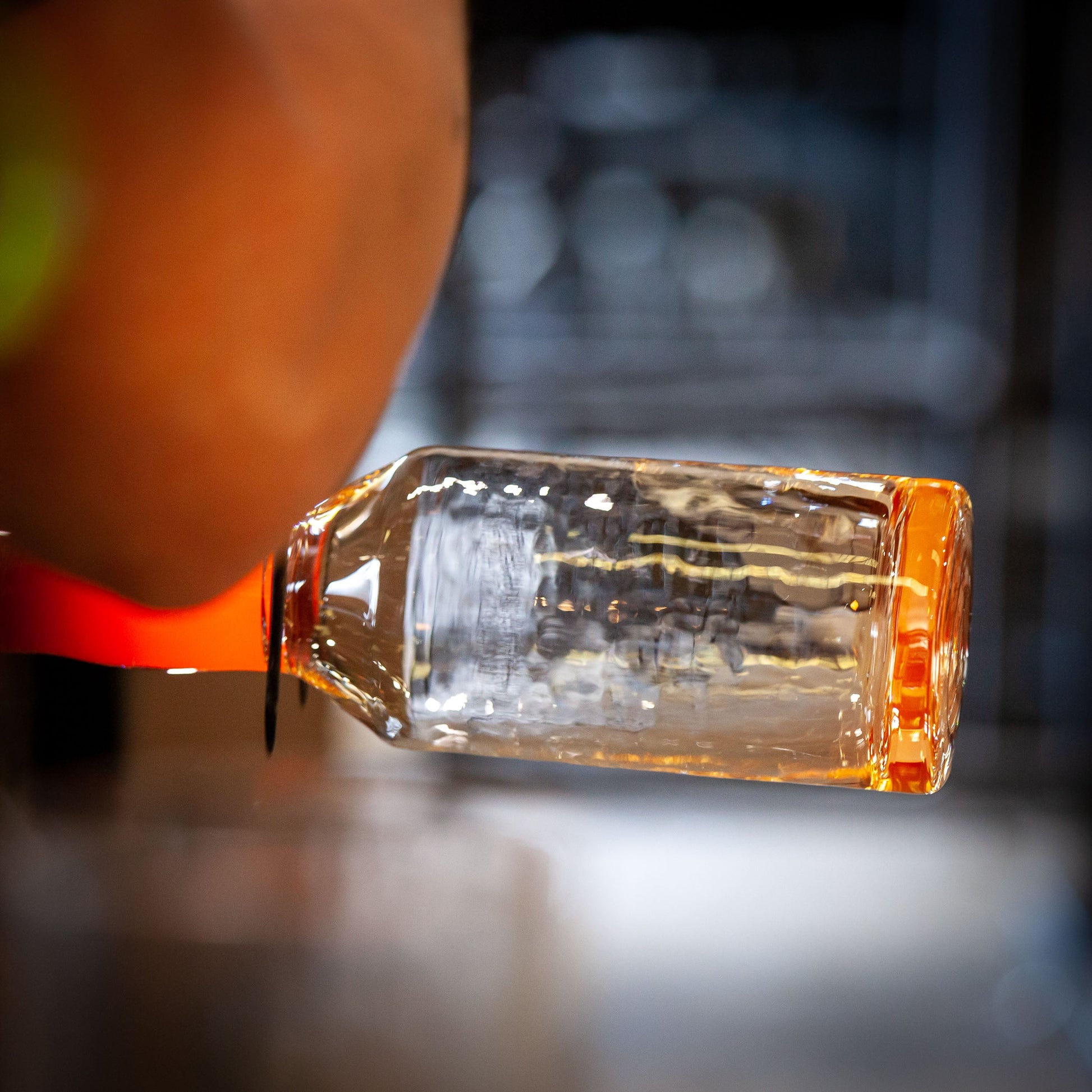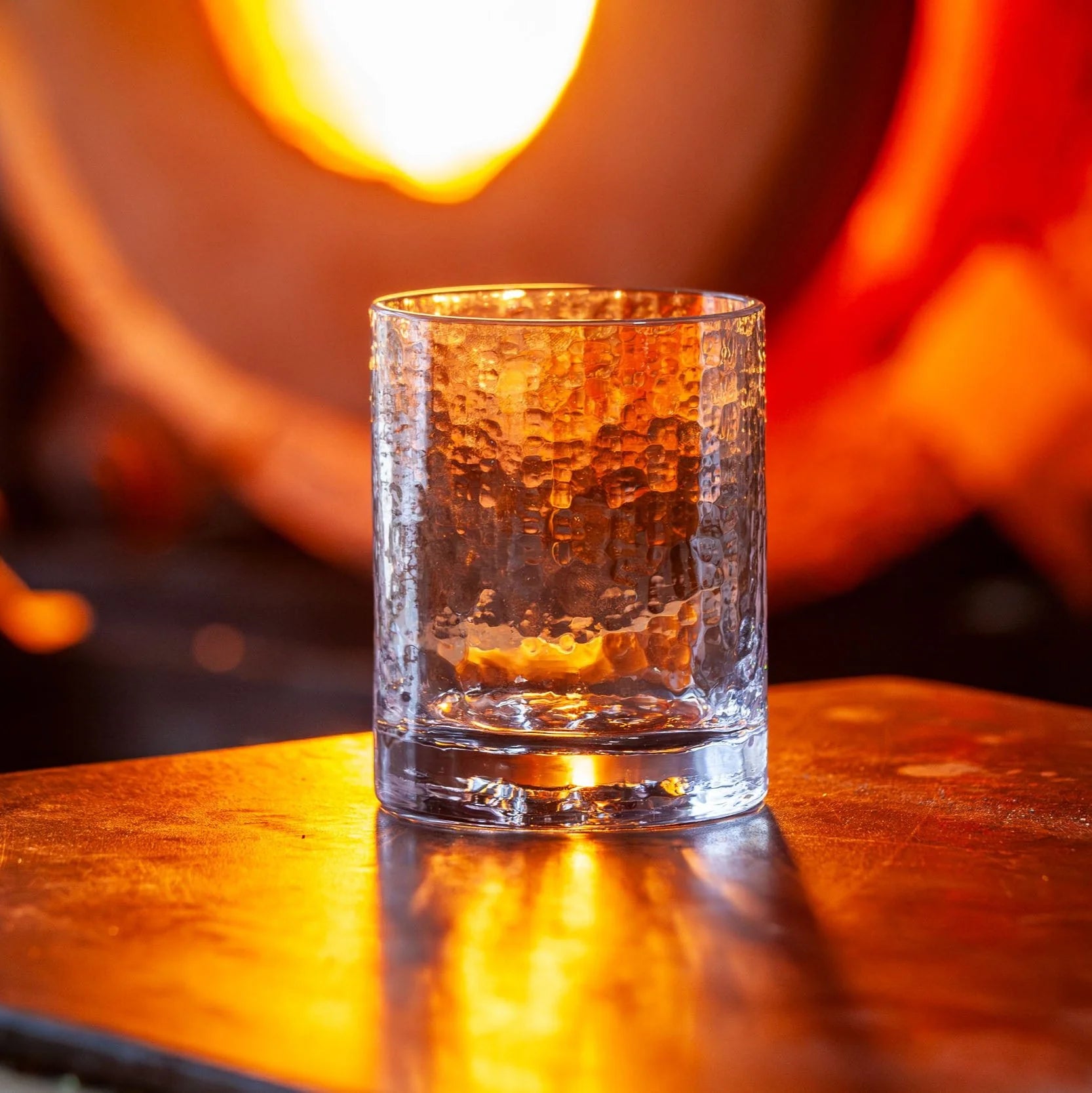 Inspired by our Handblown Rocks Glass, this edition delivers the same sturdy performance while adding a tactile, hammered look. Our glass team blows each piece inside a metal pipe, creating a textured exterior that echoes hammered metal—visually striking and comfortable to hold.