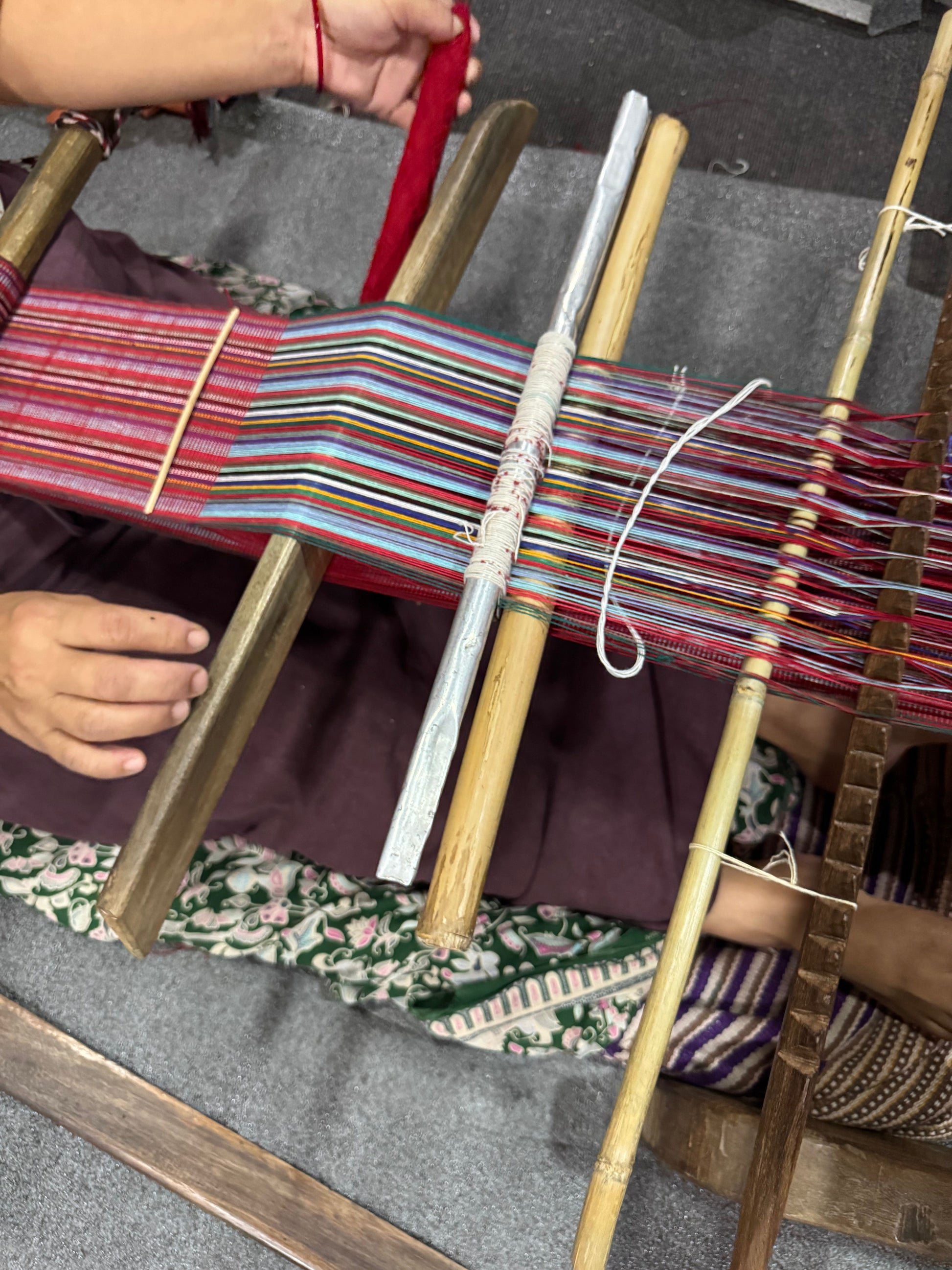 Made for US Sherpa by The Women's Skills Development Organization in Pokhara, Nepal. Keep your cash and your cards safe with a separate pocket for coins. Two zipper pockets. Prayer flag loop. Handwoven Gheri cotton, cotton lining, 2 zipper pockets. Fair Trade. Approx. 4.75" x 3.75".
