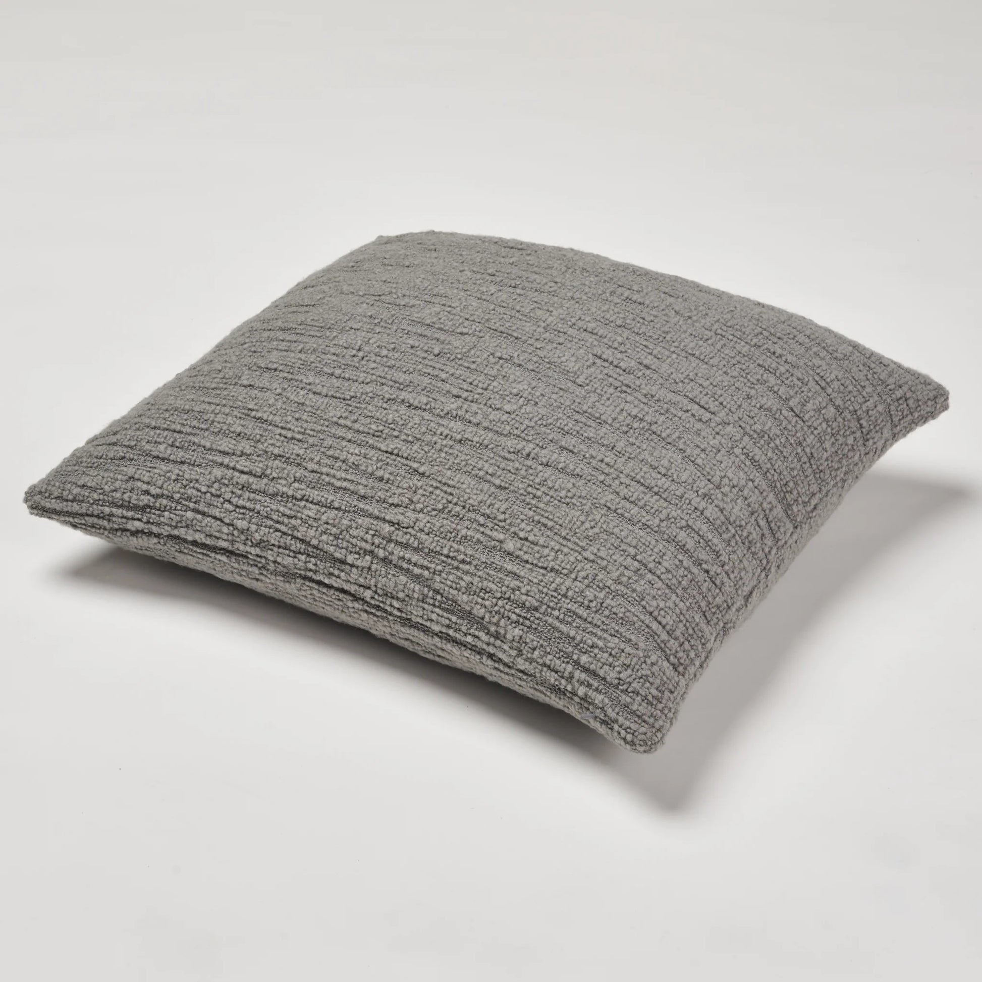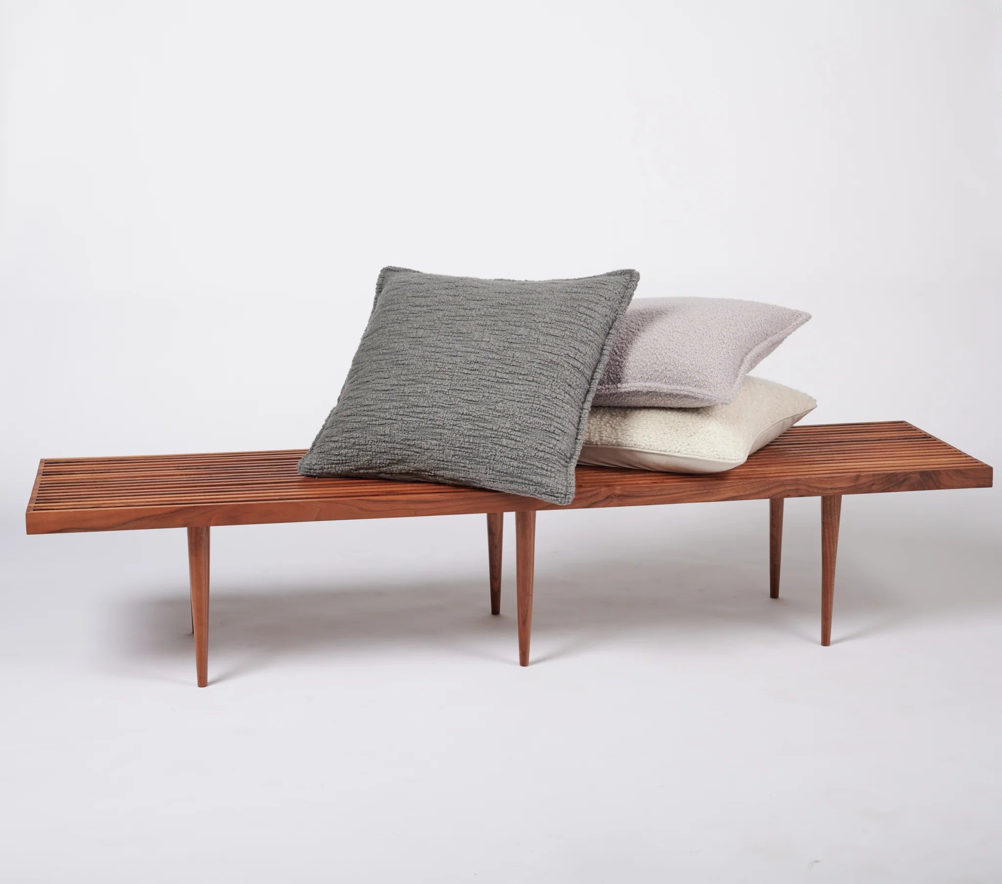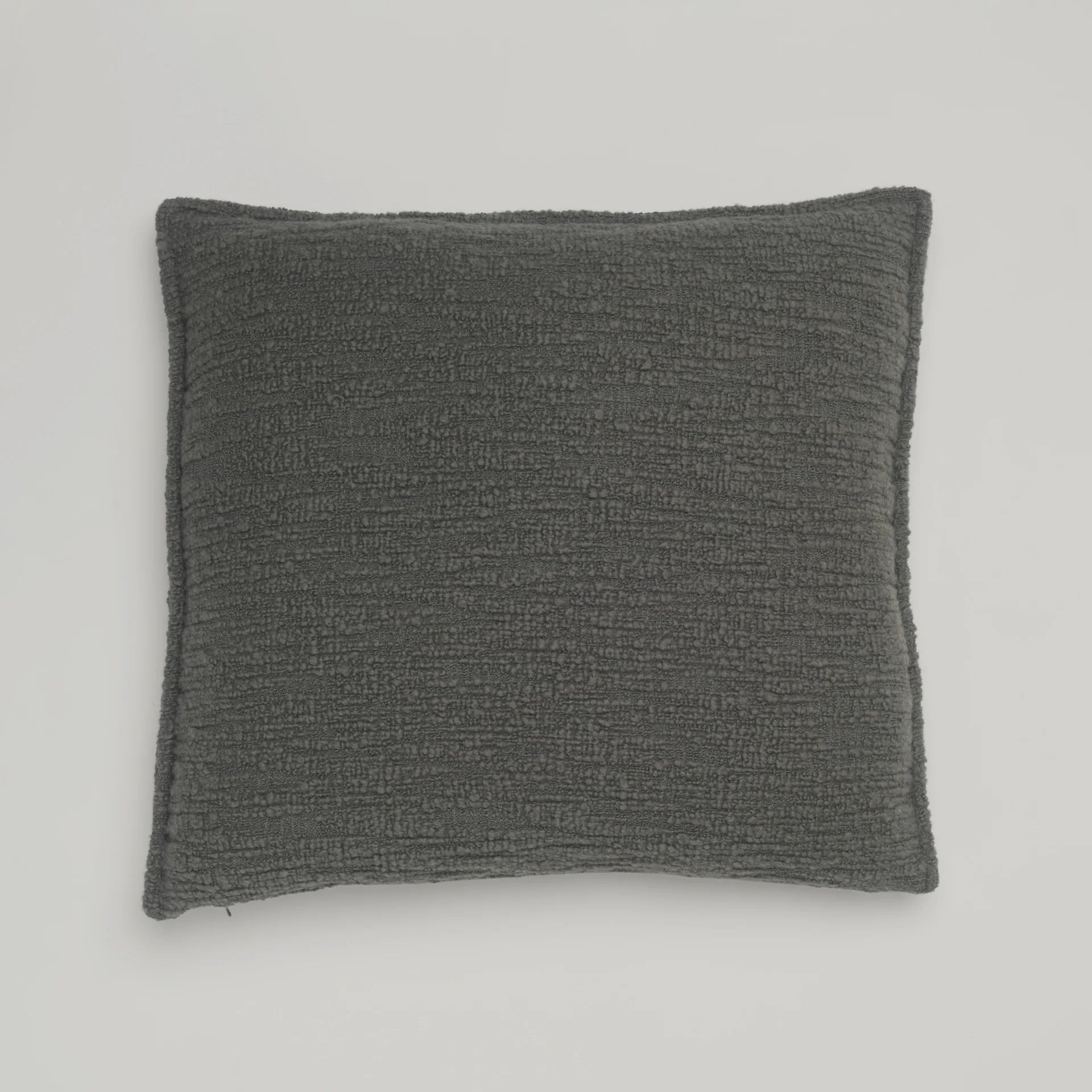 Yarn spun and fabric woven in Italy. Invisible zip closure and removable premium down and feather insert.
