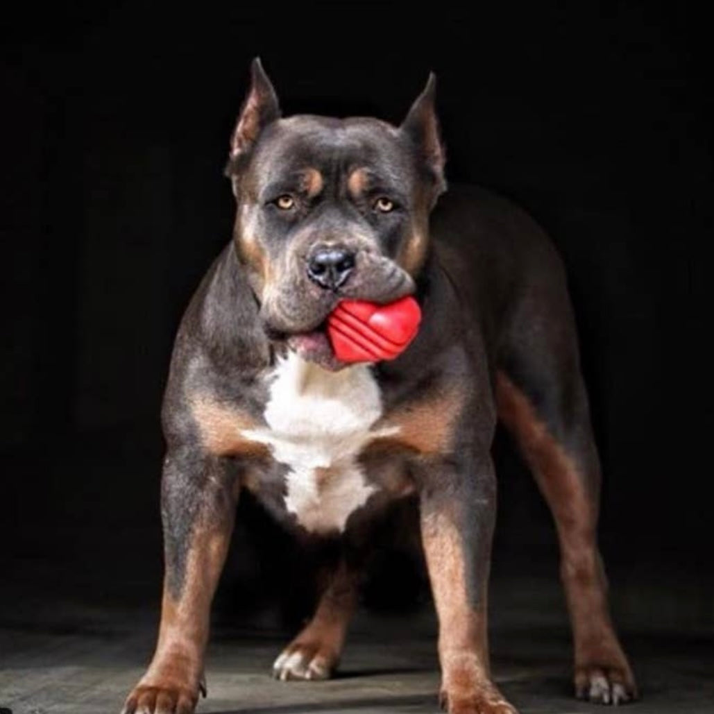 This heart-shaped ultra-durable near-solid rubber retrieving ball is perfect for the power-chewers you love. The ridges on the heart will also clean your dog's teeth while they chew.