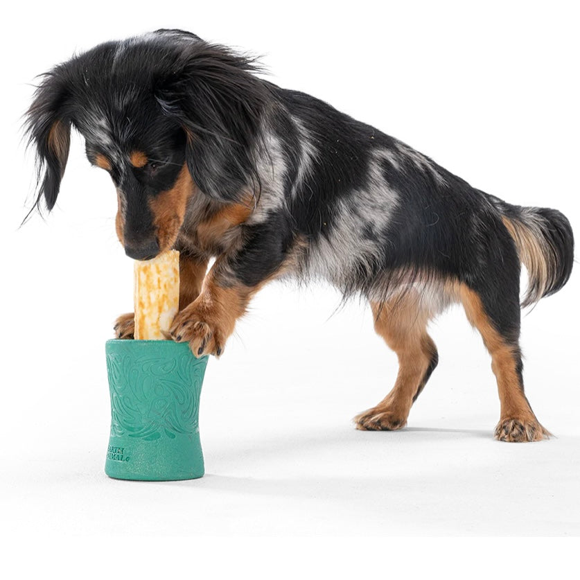 USA made, dishwasher safe, and part of West Paw's Zero Waste/Recycling Program. So, when — and if! — your dog does destroy it, bring it back to Houndstooth. We'll send it to West Paw (where they'll grind it up and turn it into a new toy) and you'll get 10% off your next Zogoflex purchase!